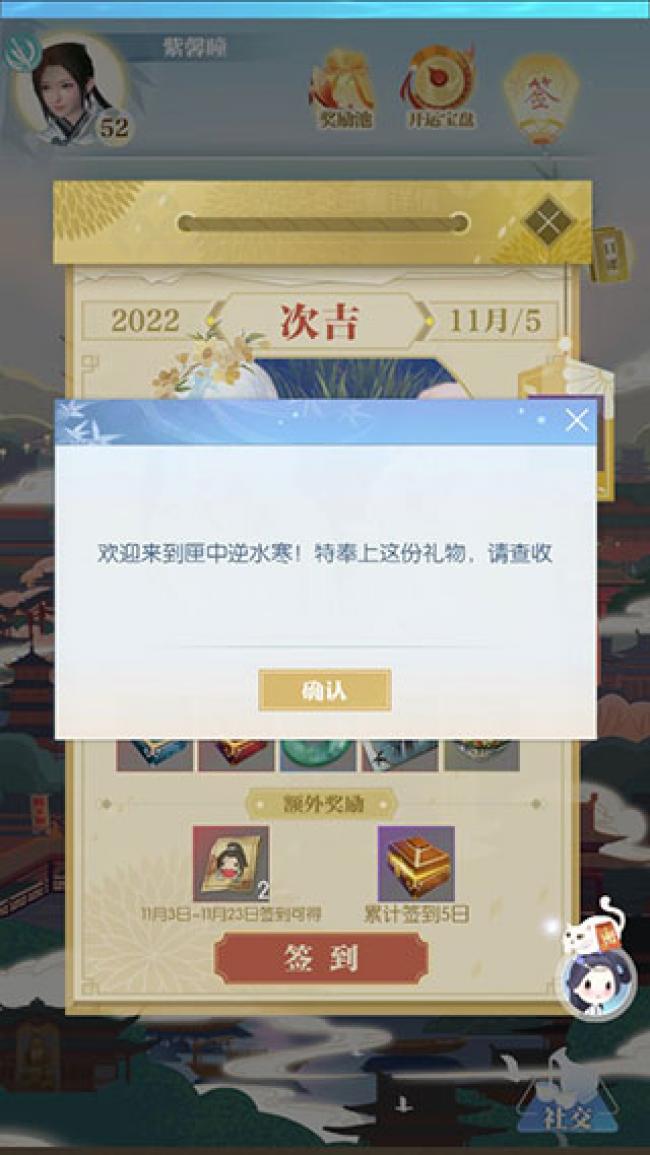 3、匣中逆水寒官网版可以进行每日签到,也可以领取签到奖励,很方便。