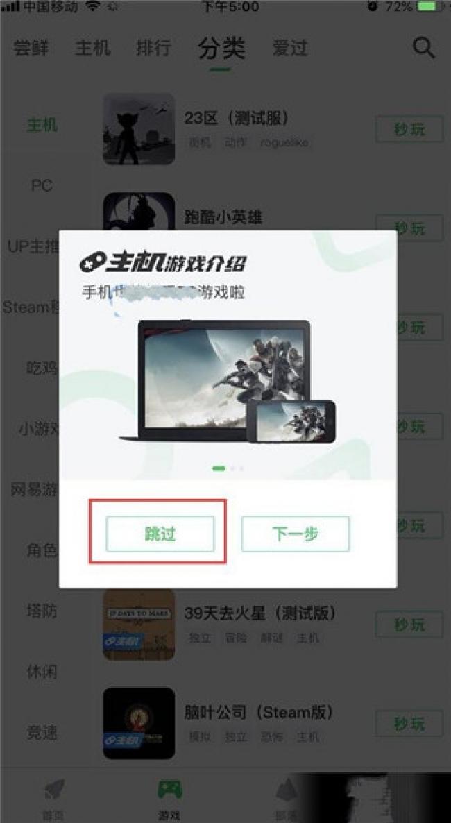 1、点击底部导航栏云玩选项,进入游戏专区,打开顶部找游戏相关分类菜单栏。